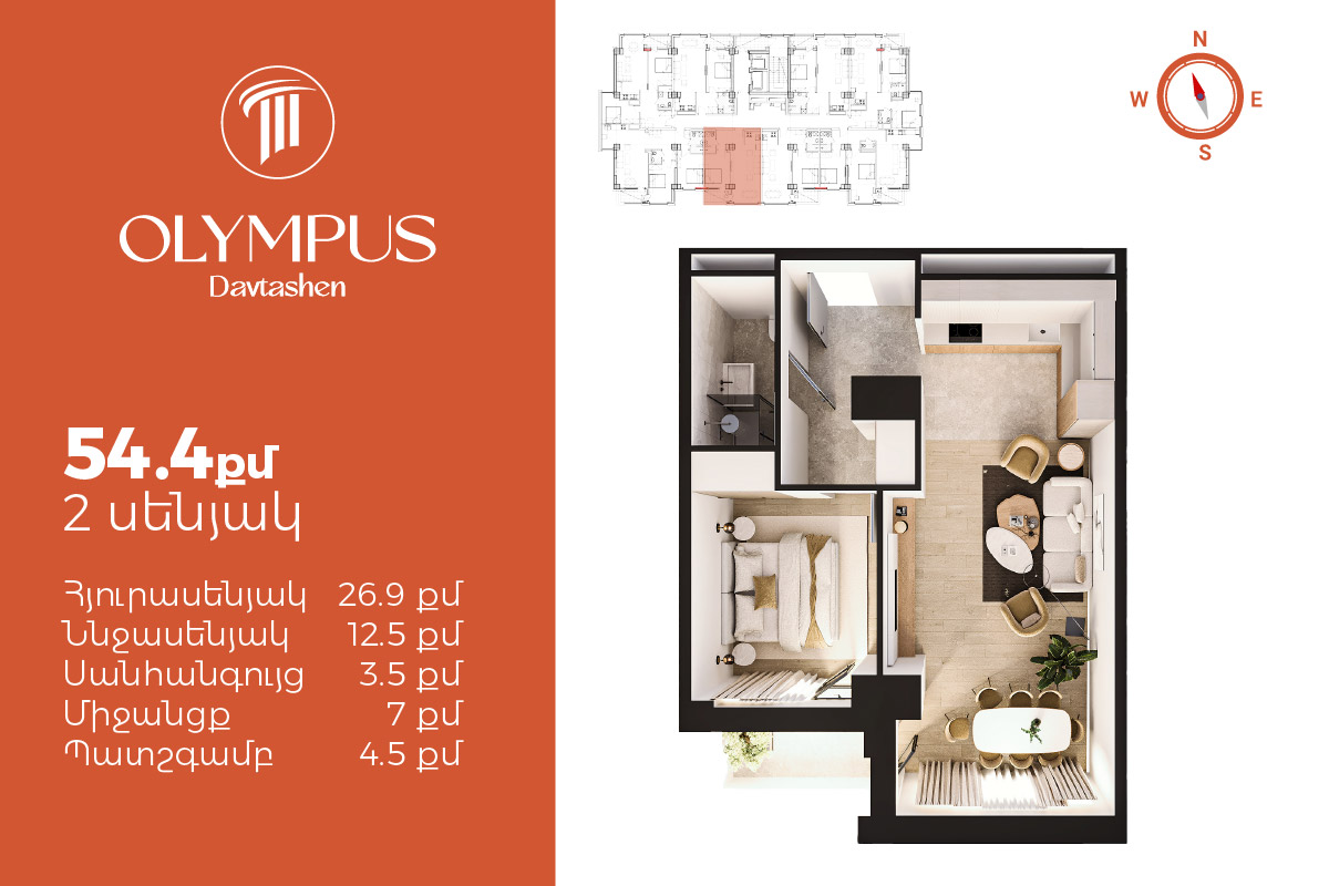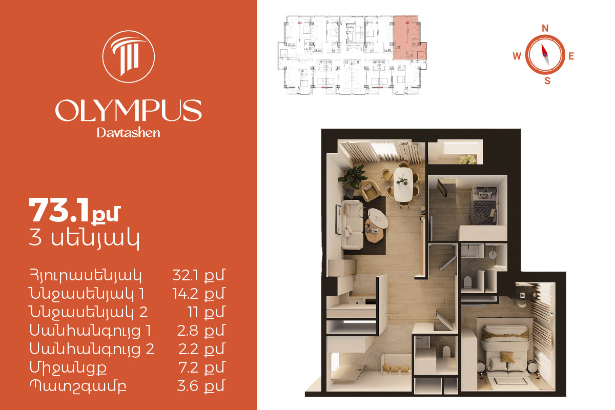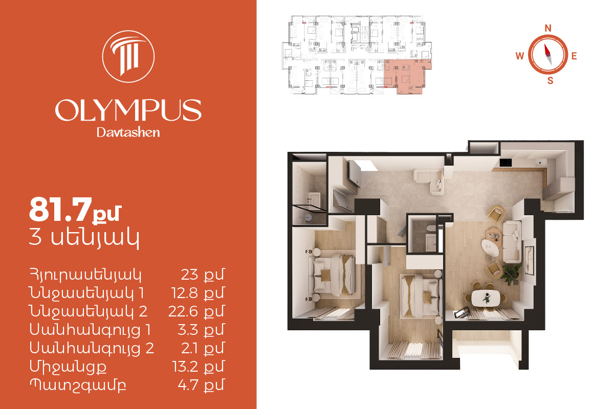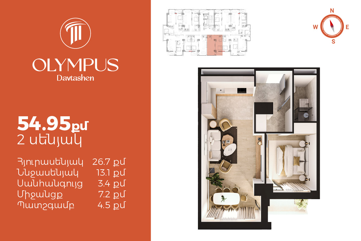 Օլիմպուս Դավթաշեն - Ժամանակակից ճարտարապետություն և տեսարան - 1քմ սկսած 440.000 դրամից
