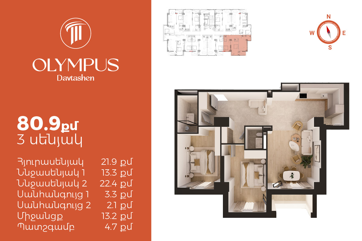 Օլիմպուս Դավթաշեն - Ժամանակակից ճարտարապետություն և տեսարան - 1քմ սկսած 420.000 դրամից