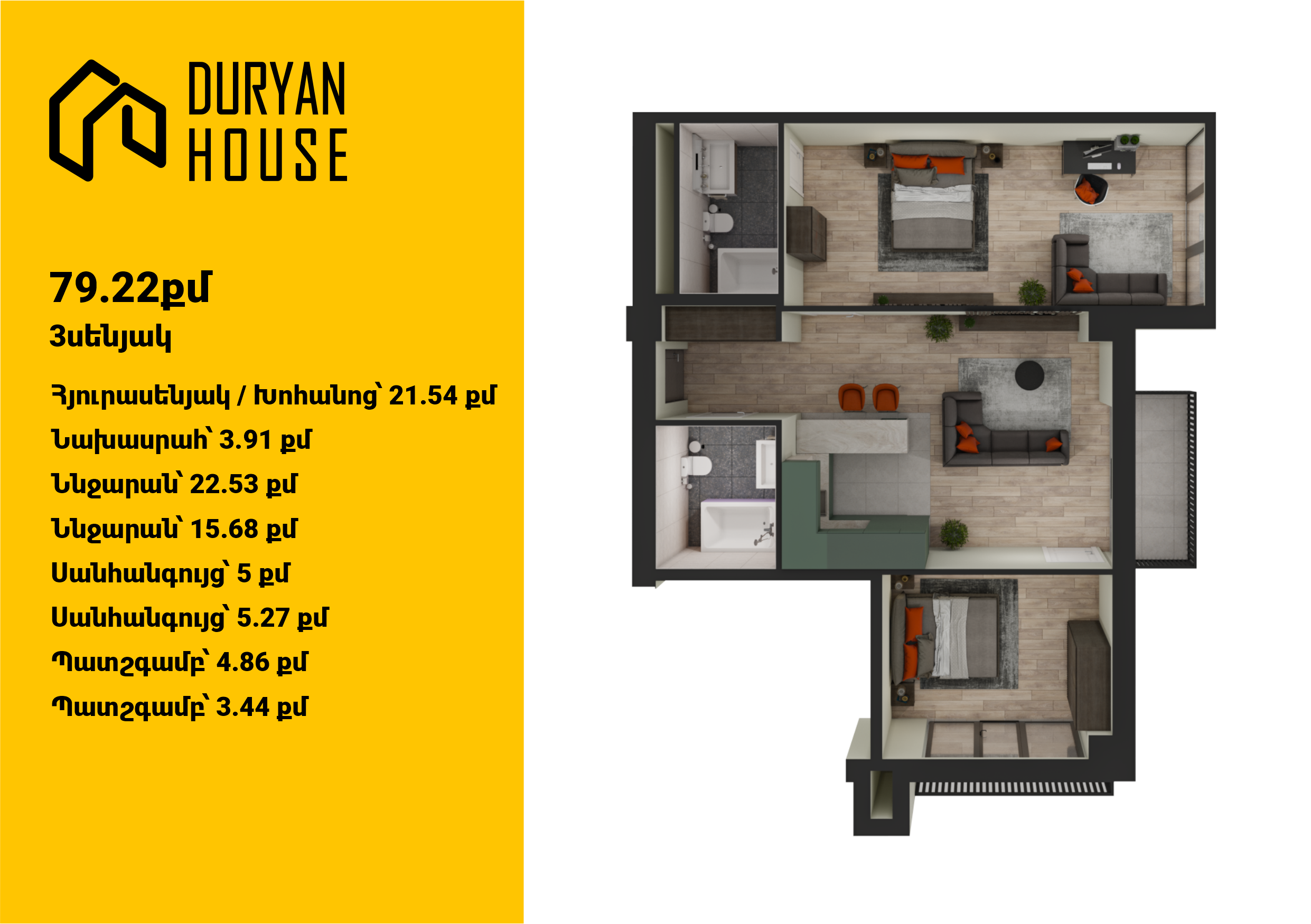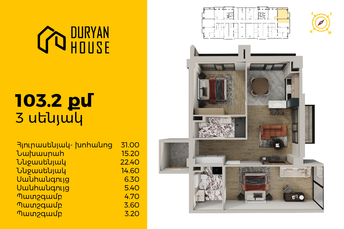 | 16-րդ հարկ | 103 քմ | 3 սենյակ