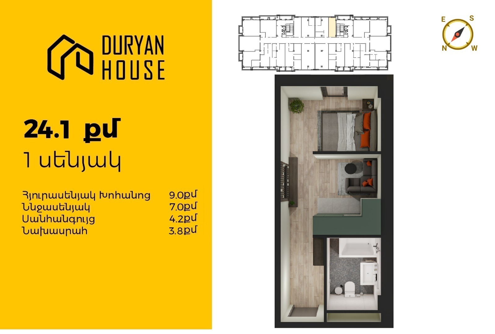 | 2-րդ մ-շ | 15-րդ հարկ | 24 քմ | 1 սենյակ